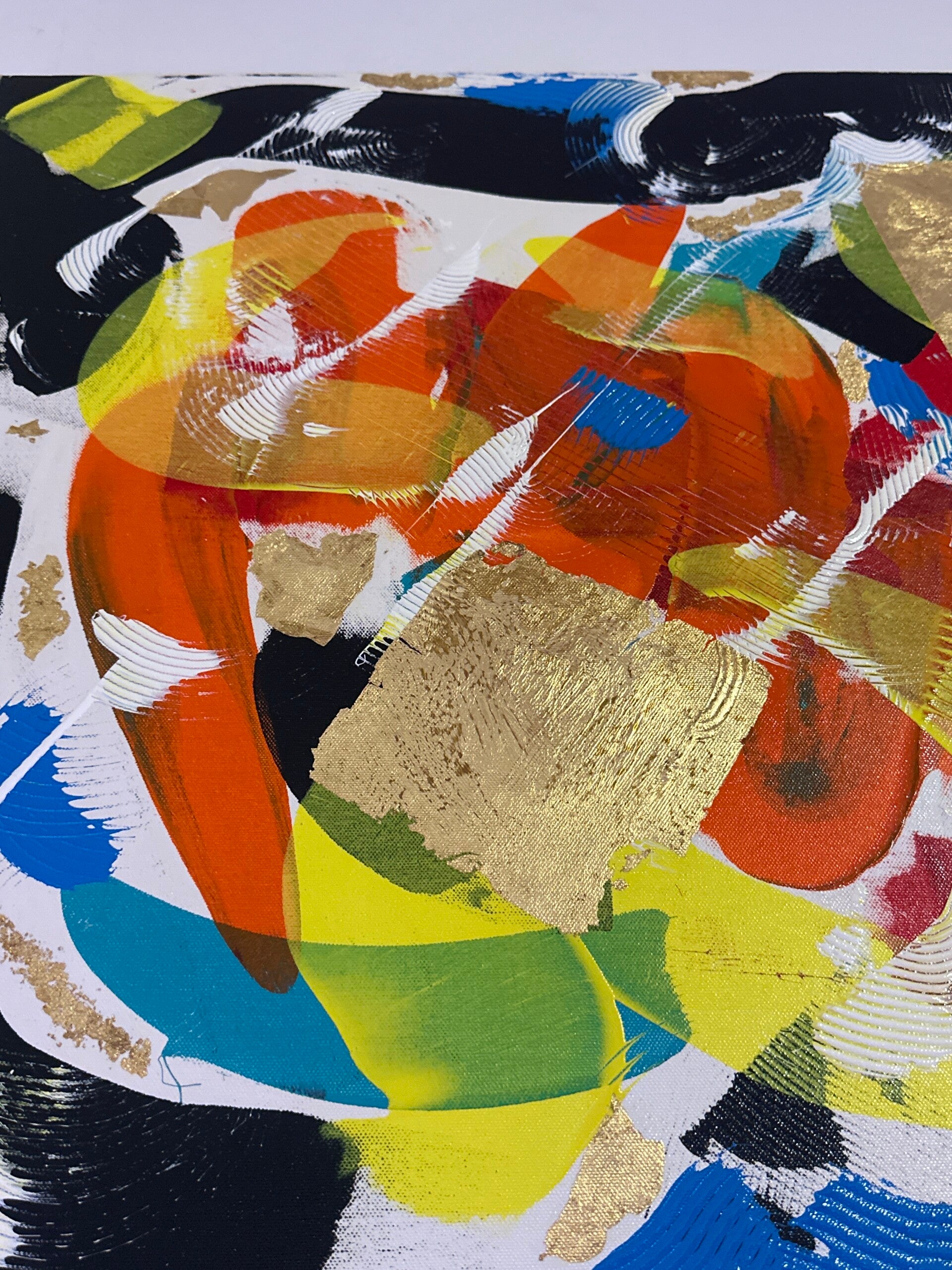 Mischtechnik Acryl mit Blattgold auf Leinwand. UV-Beschichtet